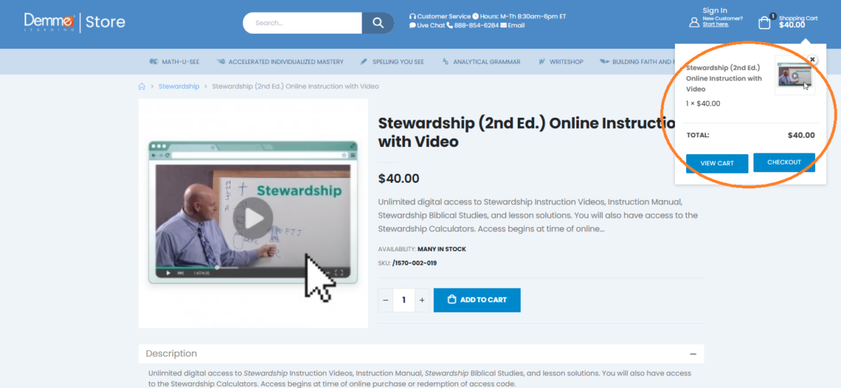 1) Go to the Stewardship Online Instruction with Video page and click “Add to Cart.”
