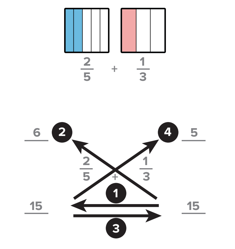 Taught in Epsilon Lesson 7, The Rule of Four is a Math-U-See strategy to find common denominators for two fractions. It can be used to compare, add, subtract, or divide fractions with unlike denominators.